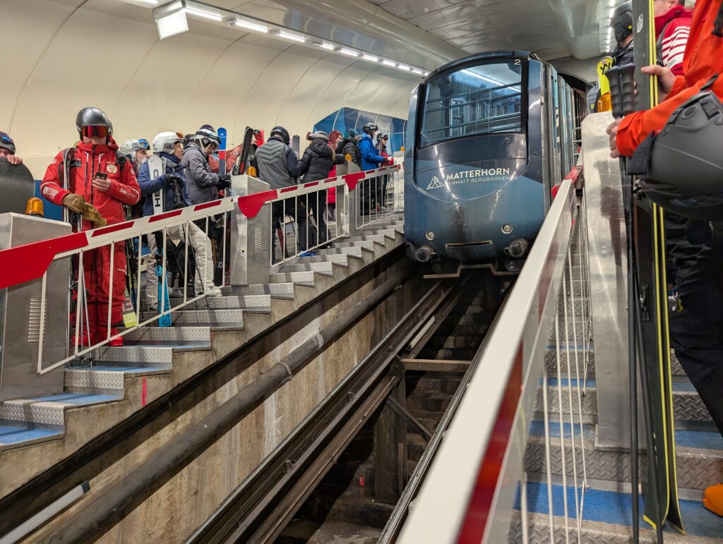往復チケット(24chf)を買って、ケーブルカーに乗り込む!周りはやっぱりスキーヤーが本当に多い・・・スキーがしたくなる!!