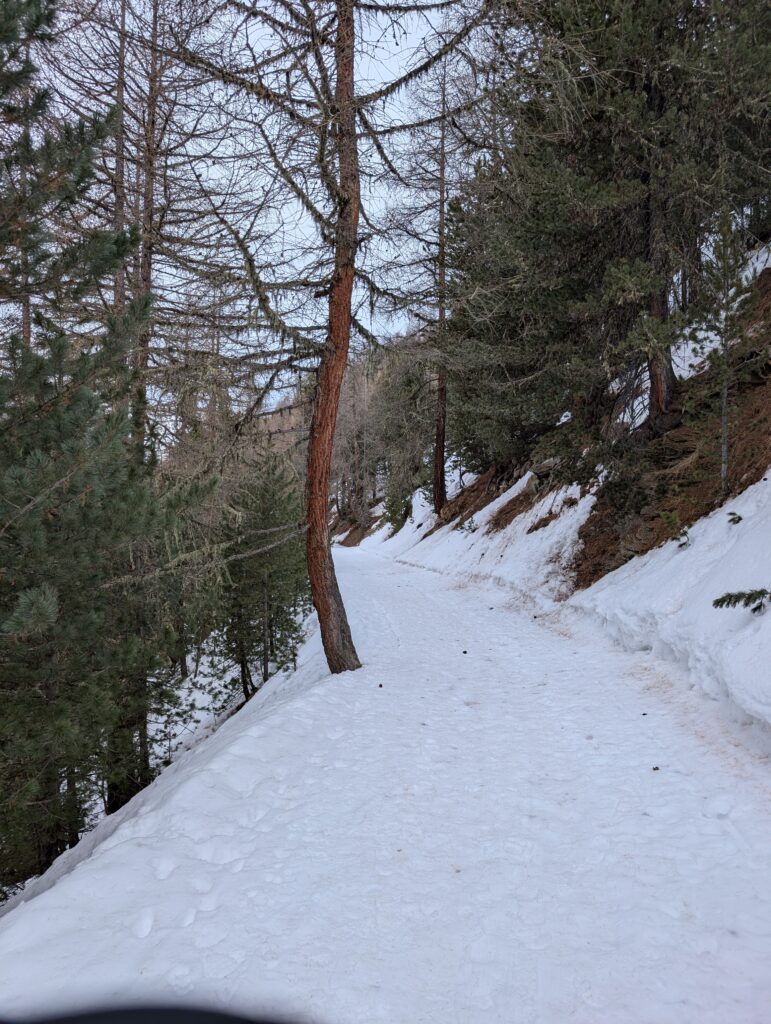 ホテルがあるTäschまでハイキングコースがあるらしいので歩いてみよう!所々にハイキングコースのマークが設置されているので安心。だけどちょっと狭い?