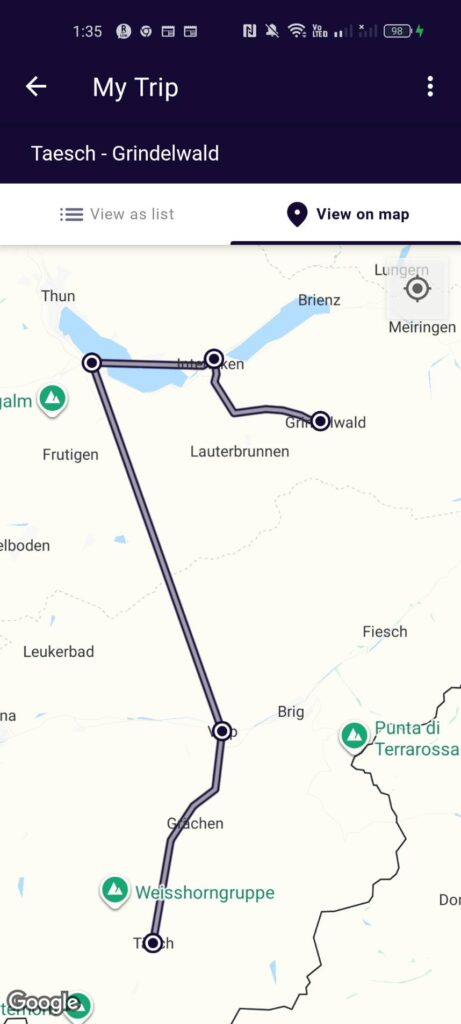 テッシュに戻ってキャリーケースを取りに行きます。その後は、ユングフラウヨッホで有名なグリンデルワルドに向けて出発!