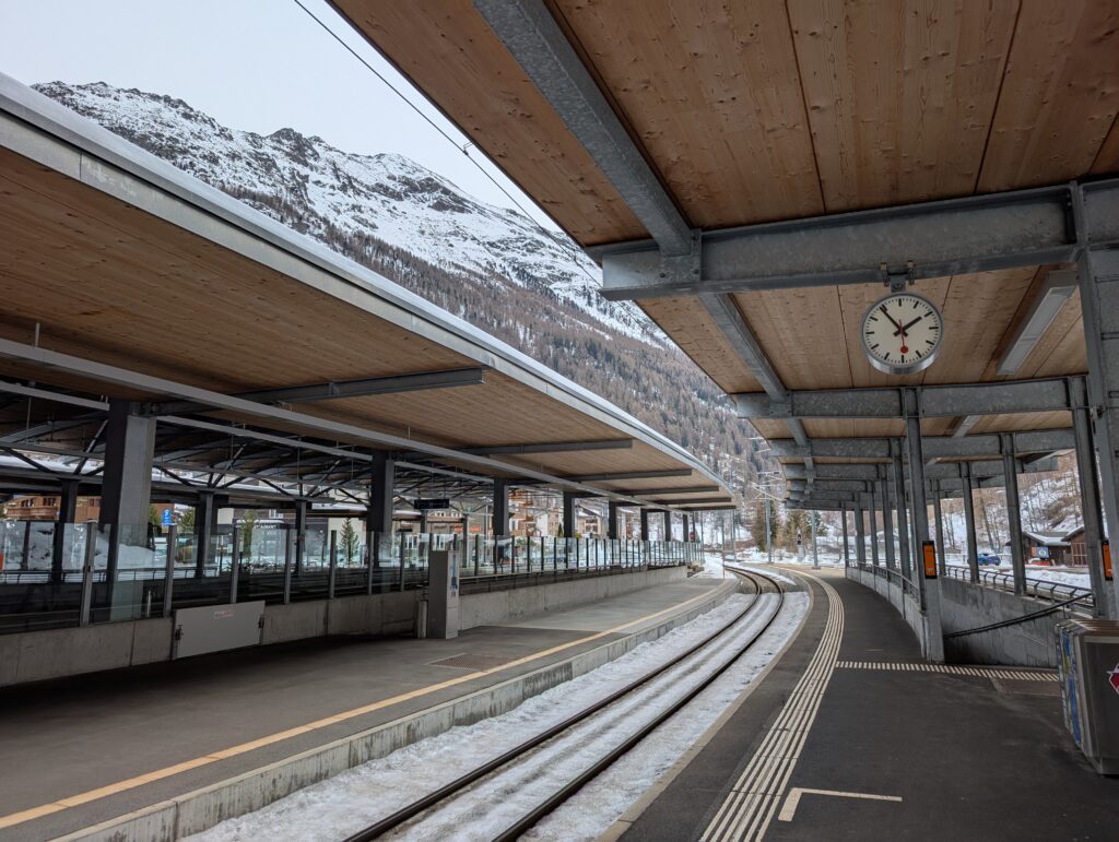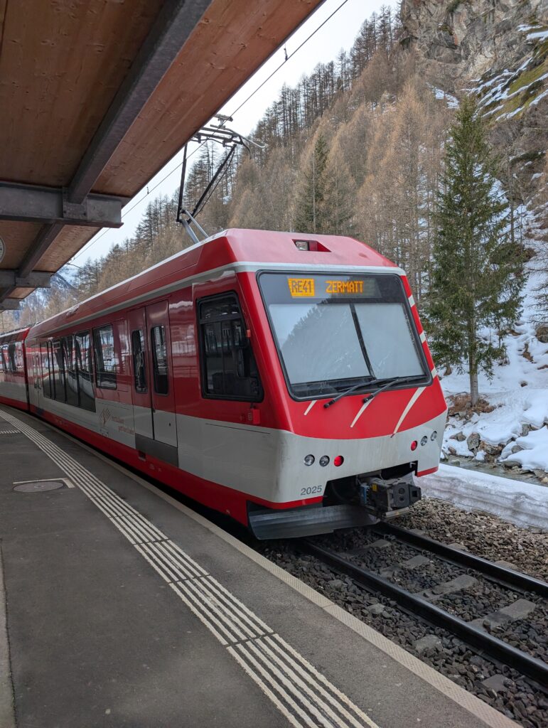 テッシュ駅での注意点を一つ紹介。テッシュからVispに向か際は4番乗り場から乗り込むのですが、4番乗り場は改札から直接いけません。2番当たりの乗り場から一度地下におりてから、4番乗り場に行きます。ちょうど写真の右のほうから出てくる感じです。