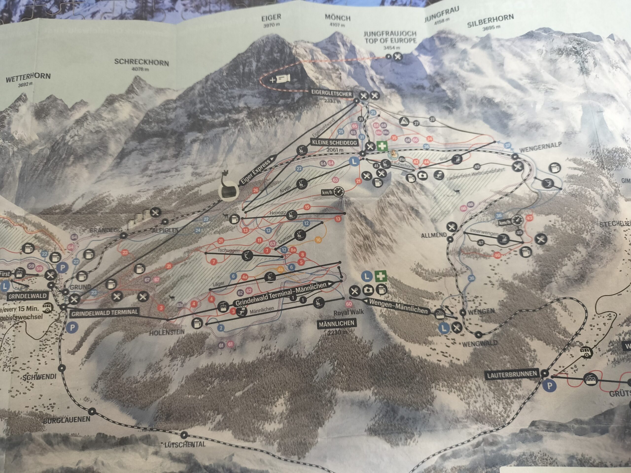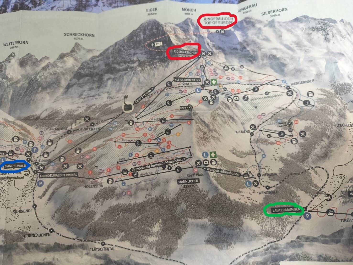 ユングフラウ地方の地図も載せておきます。上の写真が簡易版で下の写真が詳細ですね。
