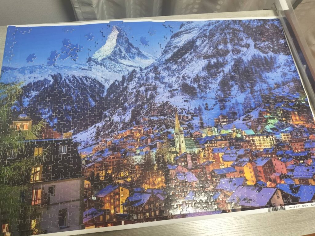 杏さんに触発され、自分もジグソーパズルを始めてみました!旅行の思い出を思い出しながら、没頭できるのでかなり楽しいです。空のピースを埋めるのが大変・・・