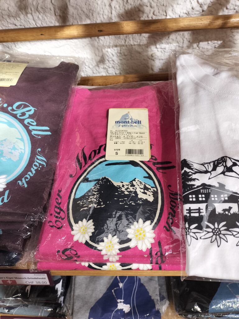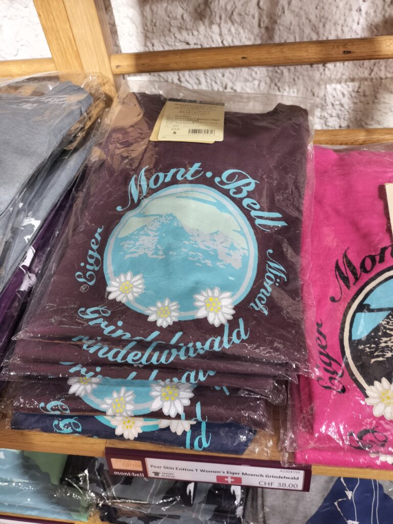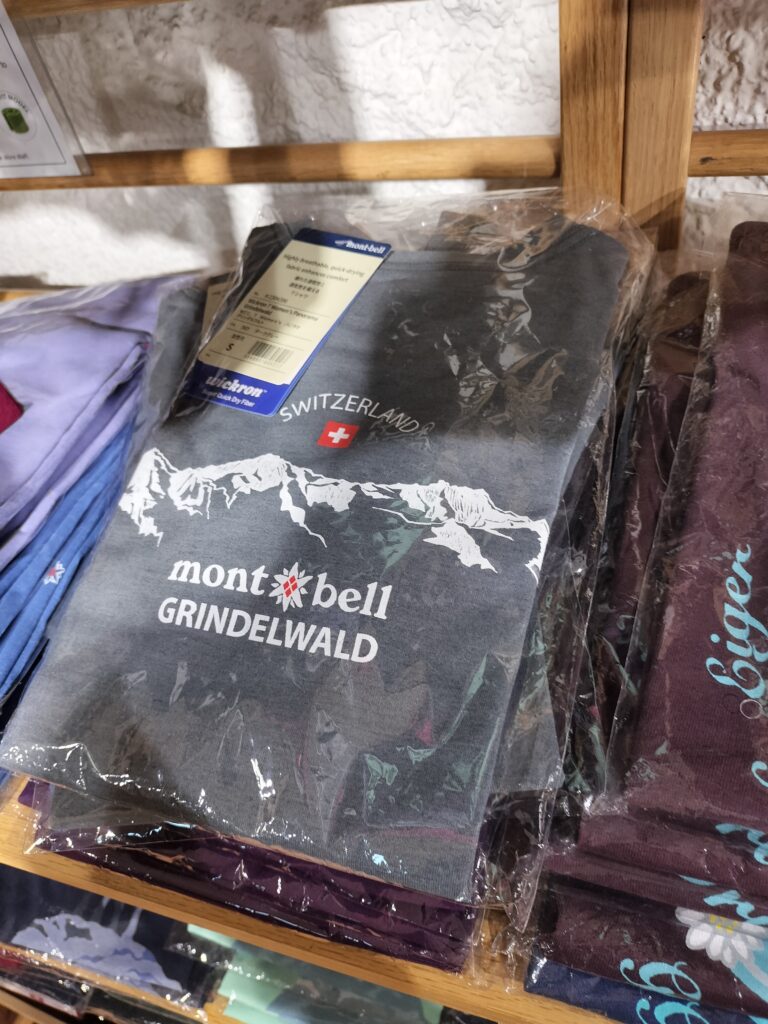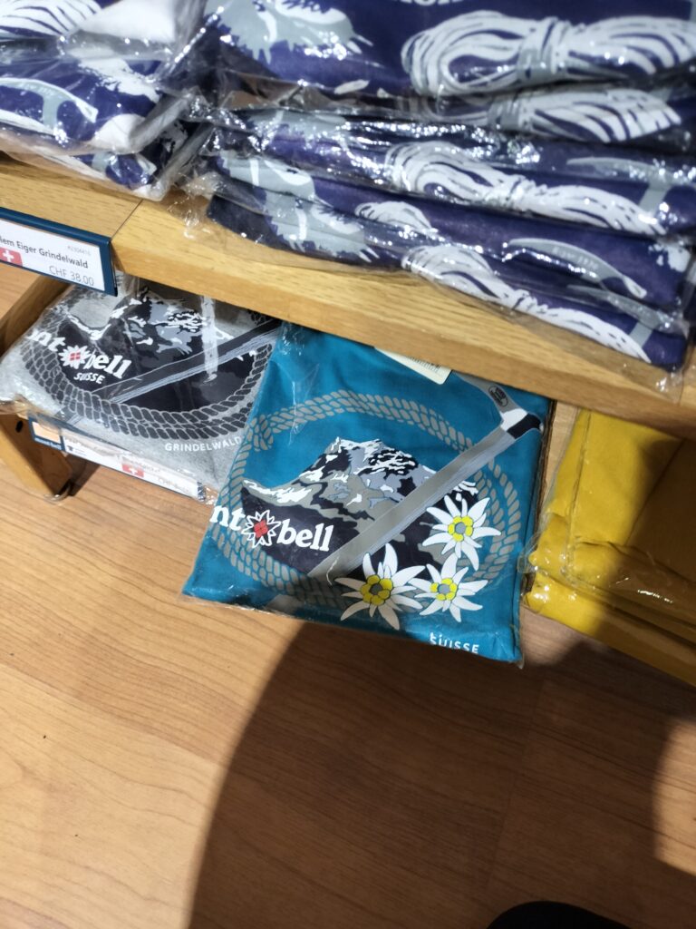グリンデルワルトに戻るとmont-bellにお土産を買いに行きます。モンベラーということもあり、グリンデルワルト限定の商品が欲しかったのです。親がジムに行くということで1つ目がこちら!あと、マグカップも買ったんですけど写真が残ってないです~🙏