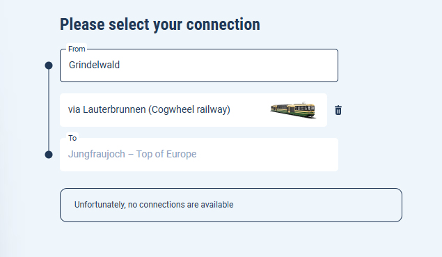 経由する駅は選べるようです。例えばグリンデルワルドを出発とした場合、ユングフラウヨッホから帰ってくるときに「ユングフラウ→ラウターブルンネン→グリンデルワルド」という順番で戻ってこれます。